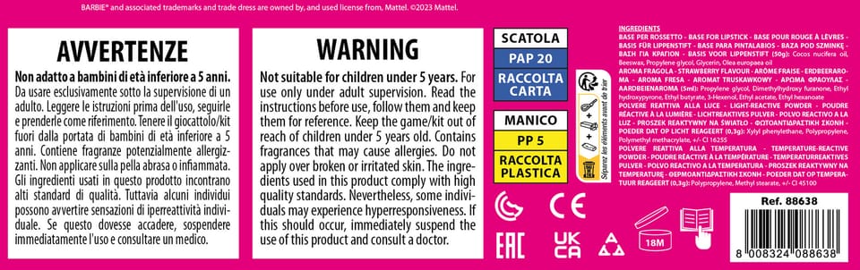 Barbie 3D Color Changing Lipstick 88638 LISCIANI