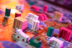The choice of actions requires skillful planning - only the construction action is available on the individual board of the company, all other shares are on a common board and players compete with each other for the right to use them.