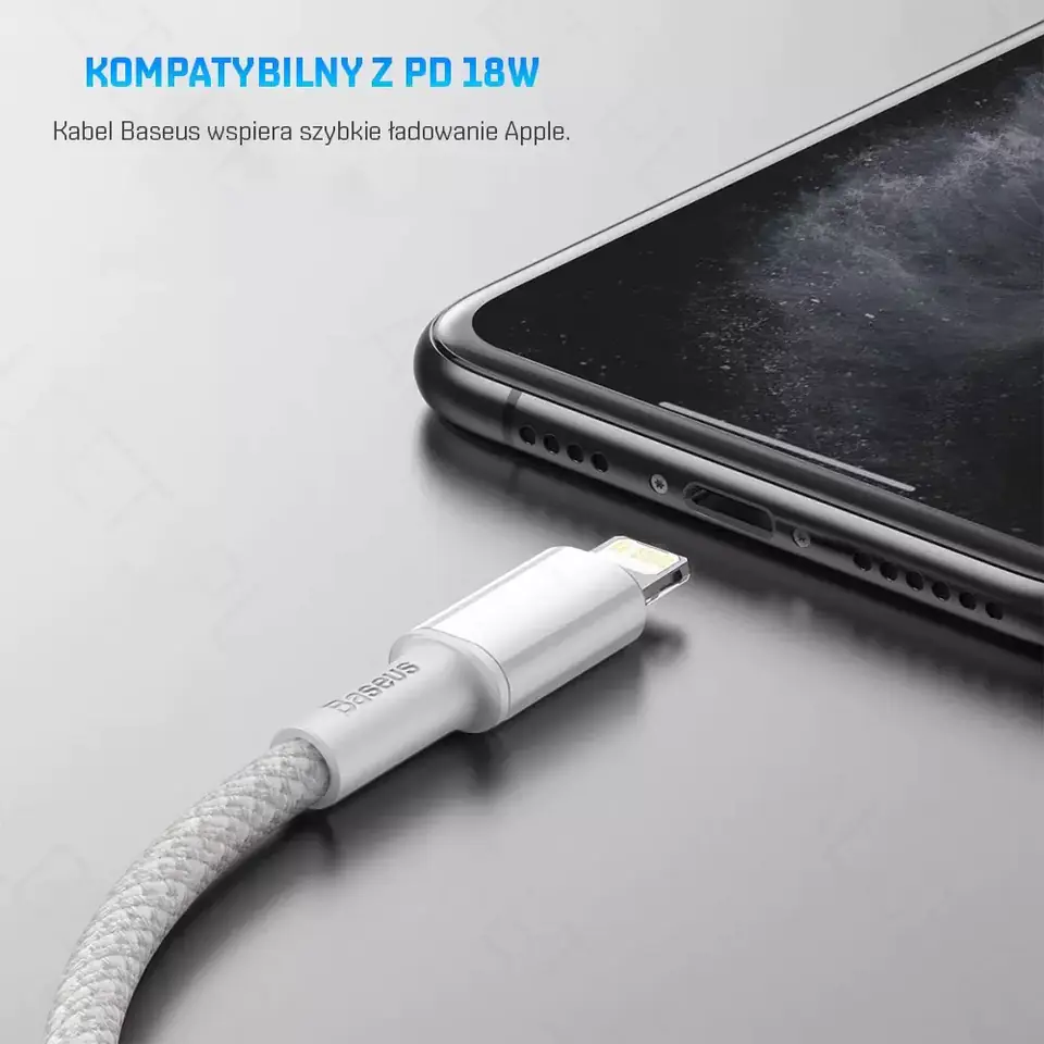 BASEUS USB-C to Lightning PD Cable - is a cable equipped with USB-C and Lightning connectors used for Apple devices. It is compatible with Power Delivery technology, called PD for short, which allows for fast charging and lightning-fast data transmission. The efficiency of this cable reaches 20W. The data transfer rate oscillates at 480 Mbps, which means that a sample file of 1 gigabyte can be transferred in just 30 seconds. Cable length 100 cm. It passed the test of 20,000 connections. It has a nylon braid and a reinforced plug, which ensures long and safe use.