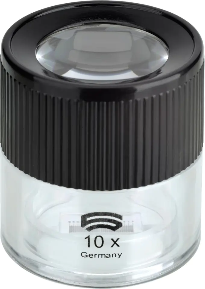 Material: plastic lens, aplanatic lens system allows vision without distortion. Measuring scale 15 mm with a pitch of 0.1 mm.