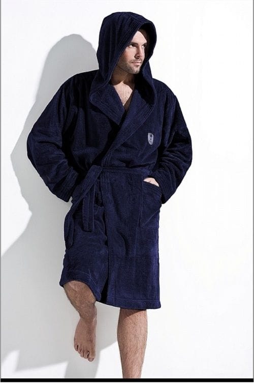 Iwo or a proposal in men who love sports style. Smooth bathrobe with not too thick weave of fibers (ultrasoft). Knee-length, practical hood, discreet embroidery on the chest. The bathrobe fits very nicely. The highest quality, the product Polish. Thickness 220g/m2. Sewn for growth of 176 cm and 182 cm.