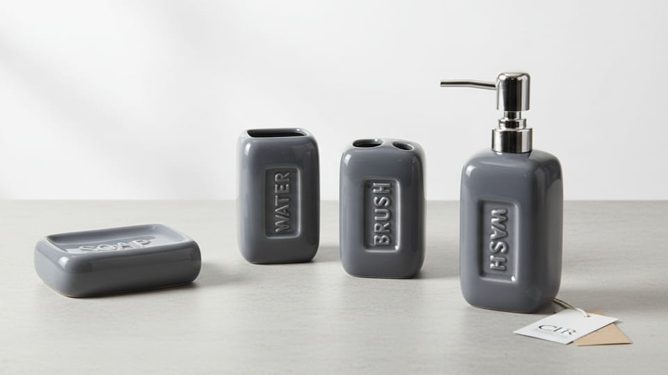Bathroom set 4 elements 4 CLR designs dispenser/soap dish/mug/brush stand