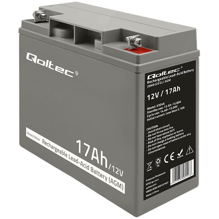 The Qoltec battery has the best quality and is made of high quality materials. Modern AGM technology was used, in which the liquid electrolyte is placed in a separator made of glass mat. It is characterized by a slow discharge process, tightness and high resistance to temperatures, vibrations and impacts.