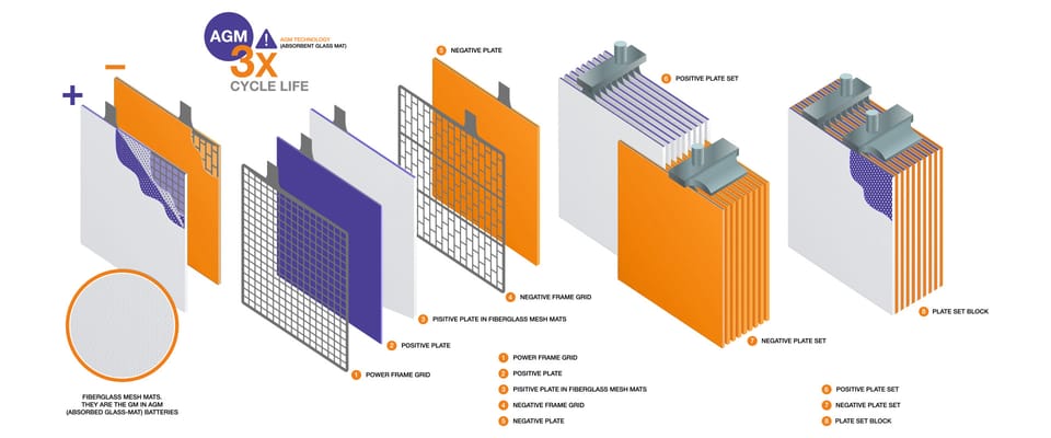 The AGM battery is designed for use in emergency power systems and in other situations in which the battery operates cyclically.