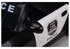 The presented black battery-powered vehicle draws attention to itself from afar. The black body is covered with numerous stickers in contrasting colors, the pattern of which is maintained in the police convention. There will be both POLICE inscriptions and pictures resembling a real police badge. And that's not all – blue and red lights are placed above the frame of the tinted windshield that are sure to put a wide smile on any child's face.