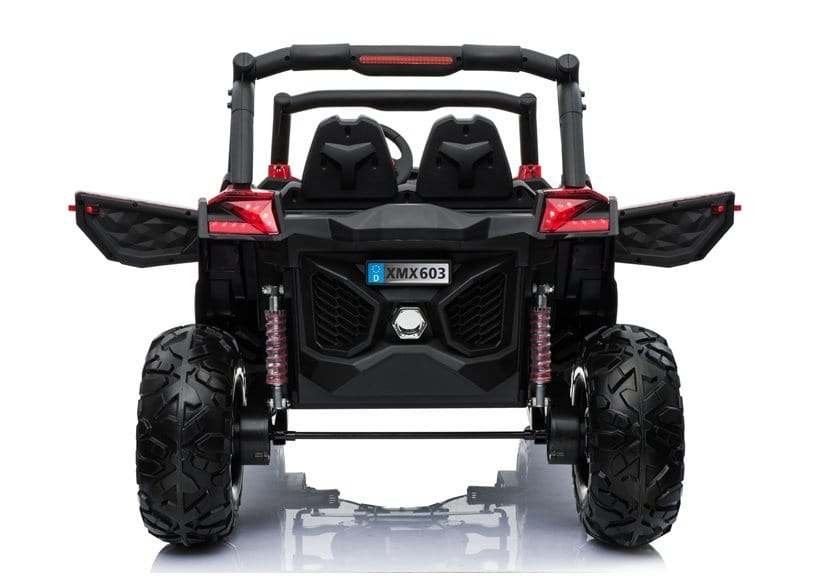 In red colors, the XMX603 is designed with attention to the smallest detail, which affects the positive feelings of the young racer. Durable and massive construction combined with high-quality materials are responsible for great fun for many years and resistance to damage. The attractiveness of the model is increased by the opening doors and shock absorbers on which it is mounted, thanks to which driving on uneven and bumpy terrain will be much more pleasant and adventurous. This children's battery car will certainly meet the expectations of young motoring fans. Why? It is worth noting its unique design, 4x45W engine, three-speed automatic transmission and illuminated dashboard.