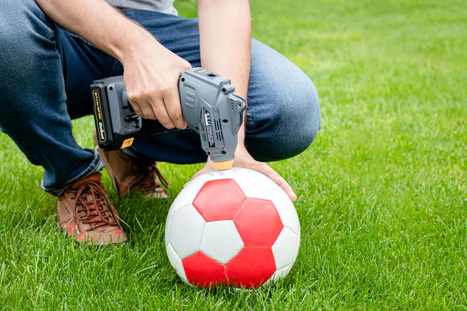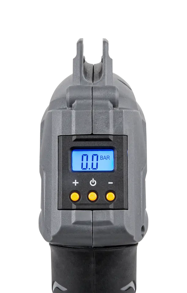 Pumping can be carried out in two ways: manually, by holding the switch until the desired pressure is reached, or automatically, setting the appropriate pressure using the +/- buttons - the compressor will automatically stop pumping when the set limit is reached. The advantage of the device is a backlit LCD display with a digital reading, which will show the increase in pressure in the pumped object on an ongoing basis.