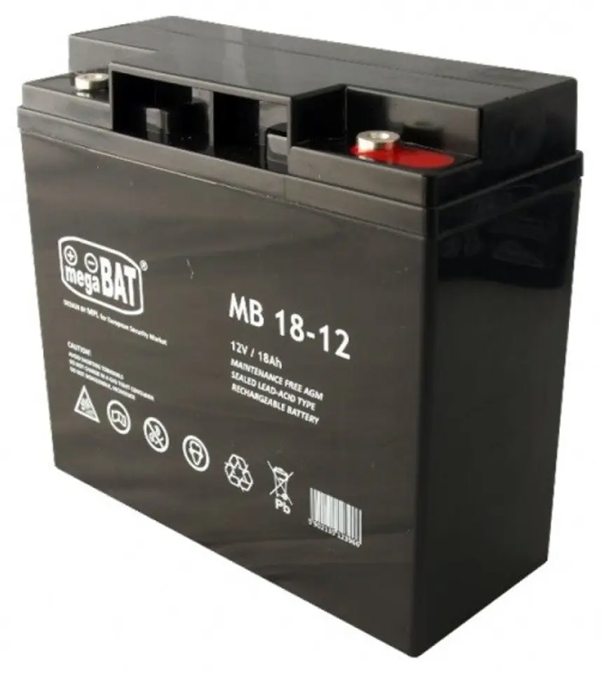 The MB 12-18 battery is adapted to work in alarm systems, access control and works as an emergency power supply for fire protection systems. It is a maintenance-free VRLA (Valve Regulated Lead Acid) battery with self-regulating safety valves and internal gas recombination) with an electrolyte trapped in an AGM (Absorbent Glass Mat) separator. During proper operation, it does not require maintenance and there is no fear of electrolyte leakage or gas escaping. Natural ventilation is sufficient to cool the cells and remove the effects of unforeseen overcharging. This makes these types of batteries suitable for installation in rooms where people are present.