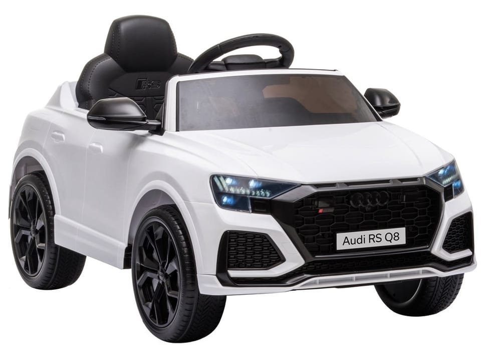 The children's version of Audi has a 2x45W drive, which in combination with a 12V7Ah battery allows you to play at speeds of 3 to 5 km/h. What's more, the model is equipped with an automatic transmission with three speeds, so that every small driver will adjust the speed of the vehicle to his capabilities. A big advantage of the presented Audi RS Q8 for children is to make the model from high-quality materials of the highest quality, responsible for the durability and long life of the toy car. All elements are devoid of sharp endings, which is a guarantee of safety coming from playing. The miniaturized version of the Audi toy car for children is mounted on retreaded EVA wheels, which are made of plastic, enabling comfortable and comfortable driving on various types of surfaces. Driving a licensed Audi RS on a battery is also made more enjoyable by safety features such as LED lights for increased visibility and mirrors.