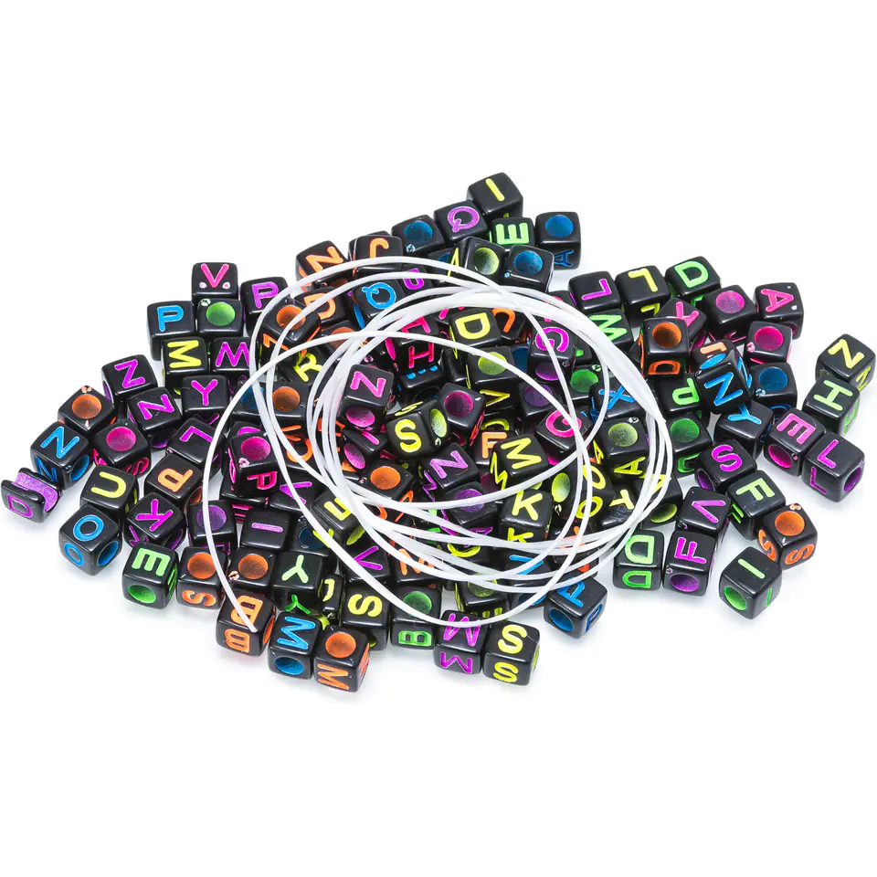Beads letters black/color + string 1m KL3 BREWIS