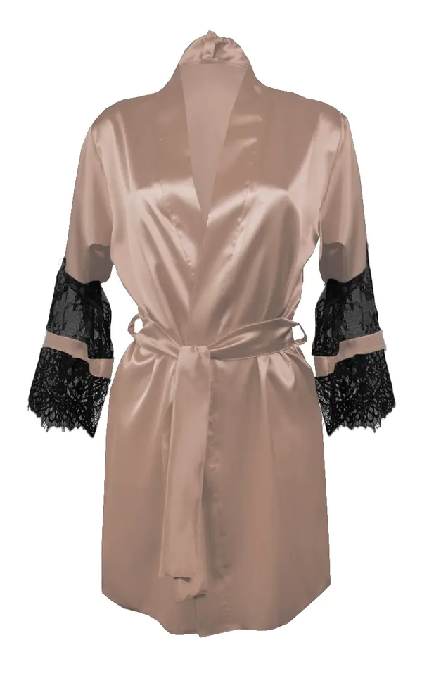 PRZYJEMNY SATYNOWY SZLAFROK DLA KAŻDEJ KOBIETY. DŁUGIE RĘKAWY WYKOŃCZONE KORONKĄ . PRZEPLATANY PASKIEM SATYNOWYM, KTÓRY IDEALNIE DOPASOWUJE SIĘ DO SYLWETKI, UWYDATNIAJĄC ATUTY KOBIECEGO CIAŁA. WERSJA KOLORYSTYCZNA: WSZYSTKIE WERSJE SATYNY KOLORYSTYCZNE (CZARNA KORONKA).
