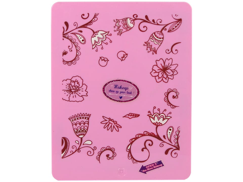 The wonderfully folded makeup palette after opening contains many treasures. When opened, you will see eye shadows and blushes, lip glosses and lipsticks. On the lid there will be a mirror in which a little girl can precisely paint herself and check the appearance of makeup.