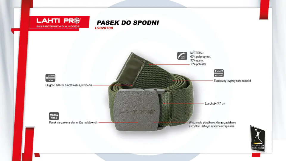 BELT FOR TROUSERS, 'METAL FREE', GREEN, ONE SIZE, LAHTI