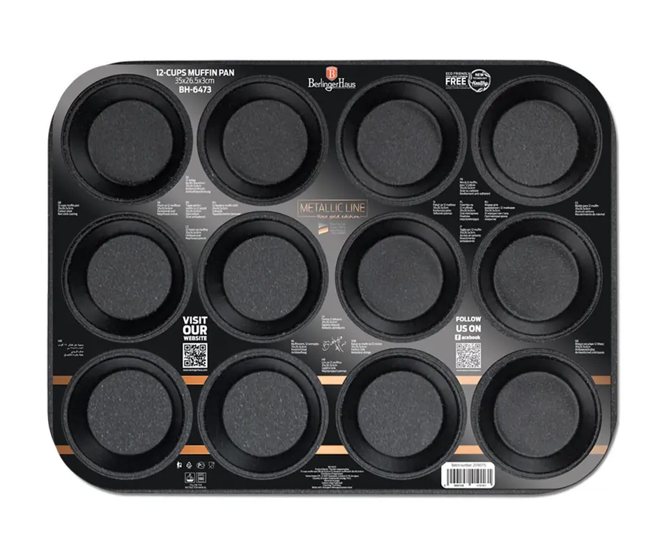 BERLINGER HAUS BAKING TRAY FOR 12 MUFFINS 35 x 26.5 x 3 CM ROSE GOLD EDITION BH/6473A
