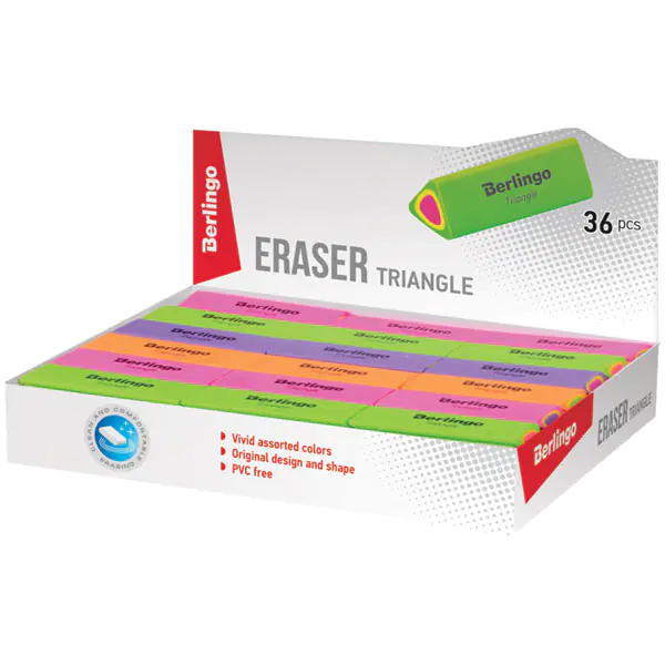 Berlingo Triangle eraser, triangular, thermoplastic, 44 x 15 x 15 mm, mix of colours