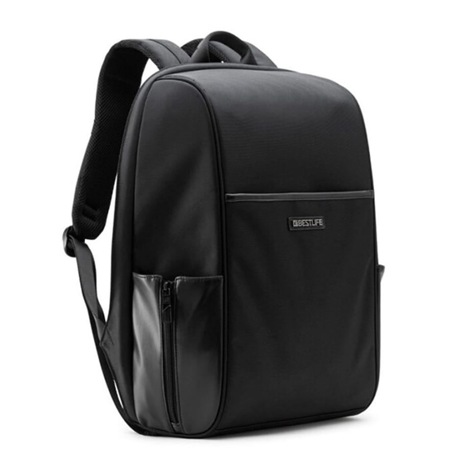 Laptop backpack with padded compartments for tablets and laptops up to 15.6”. USB connector for charging devices. Opening up to 180o. Large anti-theft main compartment, with dividers for accessories. One front pocket, two side bottle pockets and one hidden back pocket.Description of the productThe Bestlife backpack is ideal for safely transporting your laptop up to 15.6".Protection and comfortThe backpack protects your laptop from damage and dirt.Practical functions- Equipped with side pockets for easy access to your small items.- Thanks to the USB port, you can charge your devices on the go.- An elegant black design that suits any style.- Dimensions: 42x30x12cm