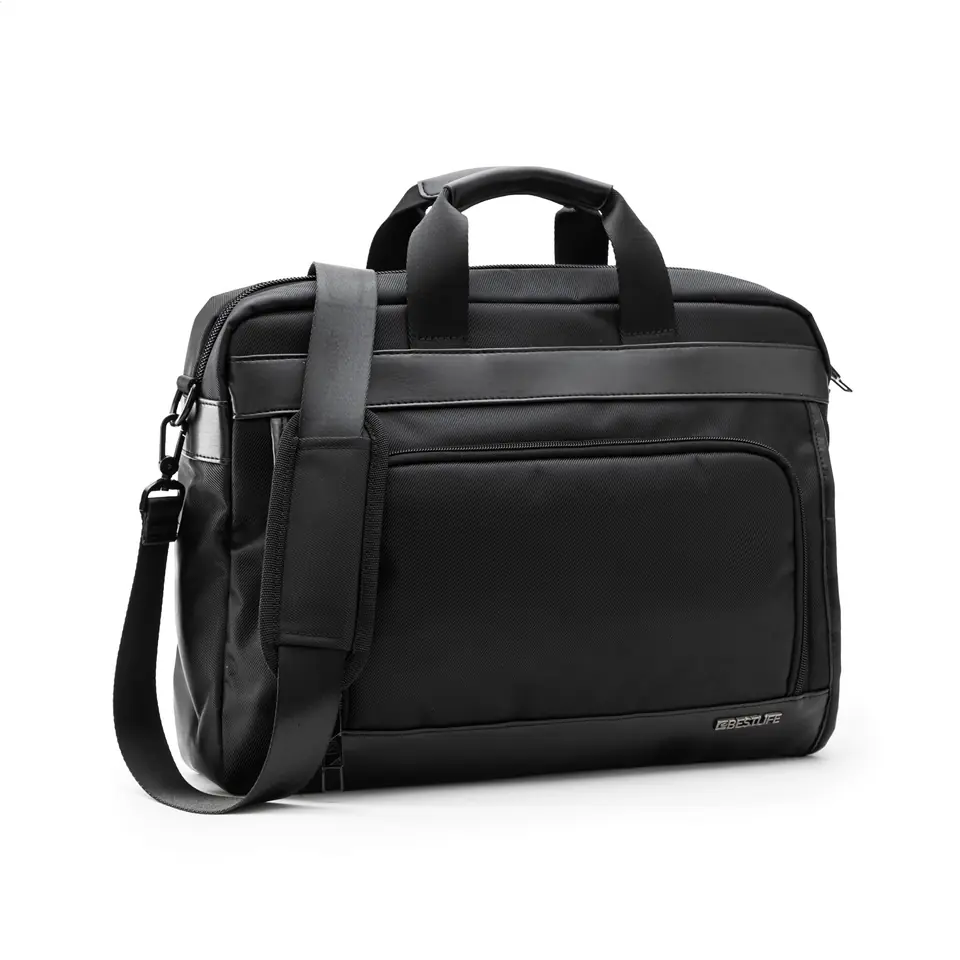 Bestlife bag for laptop and notebook 15.6''Briefcase with padded compartments for tablets and laptops up to 15.6”. Removable and articulated strap, padded on the shoulder for a more comfortable transportation. Pockets on the front and back. Large main compartment. Ergonomic shoulder straps and back. - bag for comfortable transfer of laptops and notebooks with a maximum diagonal of 15.6''- protects the device from damage and pollution- spacious, equipped with a smaller front pocket- black- dimensions: 11x30x39cm