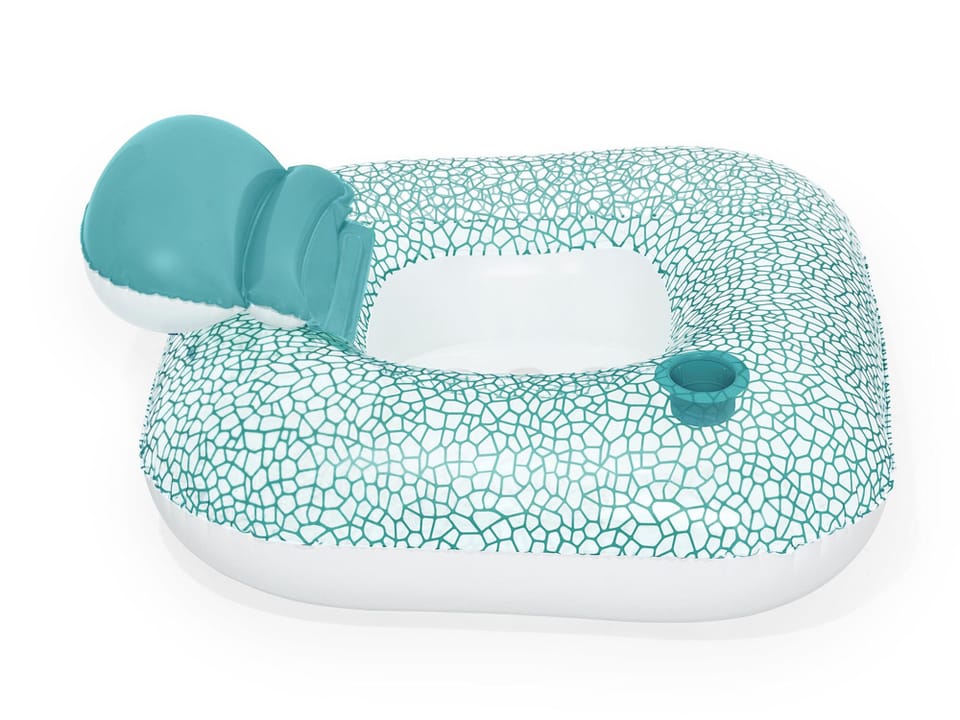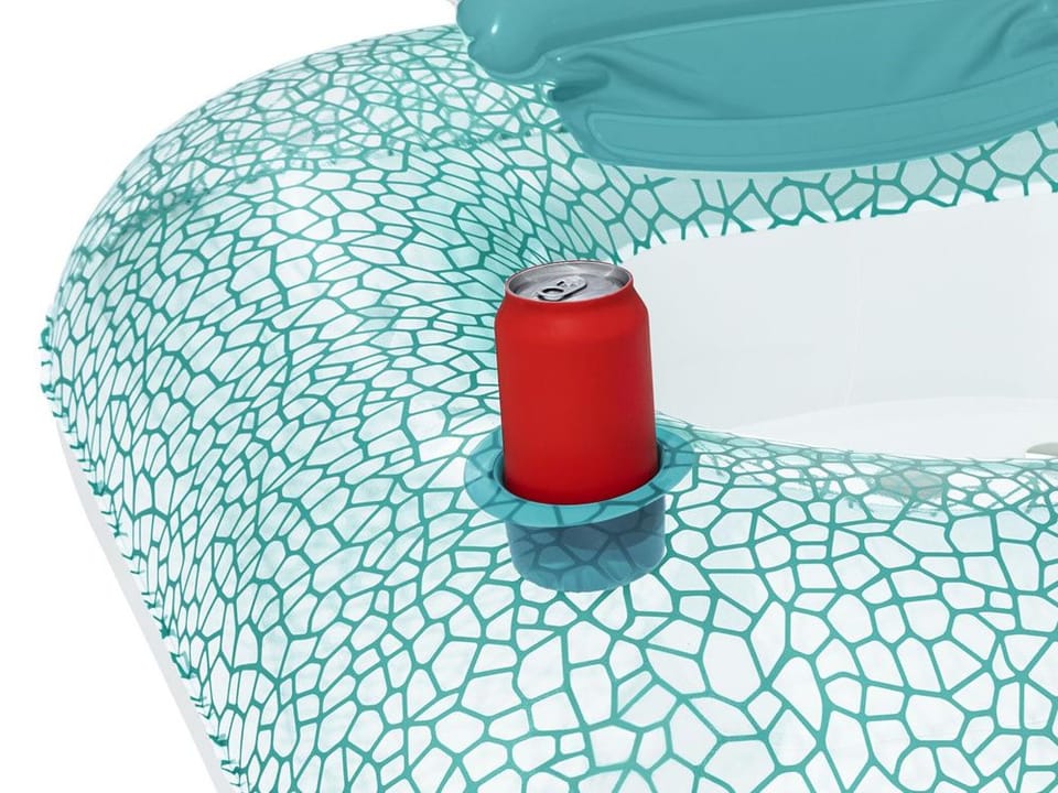 This inflatable swimming square with pillow comes with a supporting, adjustable backrest and cup holder so you can take your favorite drink with you.