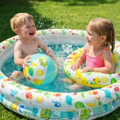 Inflatable pool with colorful graphics will provide a lot of fun for every amateur of water madness.