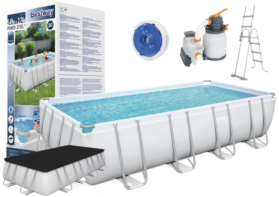 Bestway Power Steel Rectangular 5.49m x 2.74m x 1.22m, Grey/Blue