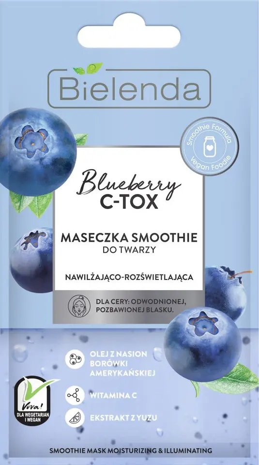 Vegan SMOOTHIE mask with an appetizing consistency in the style of #foodie with real blueberry seeds, designed for daily care of dehydrated, lackluster skin.