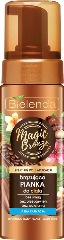 Bronzing product for the body in the form of a light foam, allowing in a short time to achieve the effect of a natural tan. The foam already during application gives the skin a very delicate golden color, which is strengthened within 3-5 hours after application*.