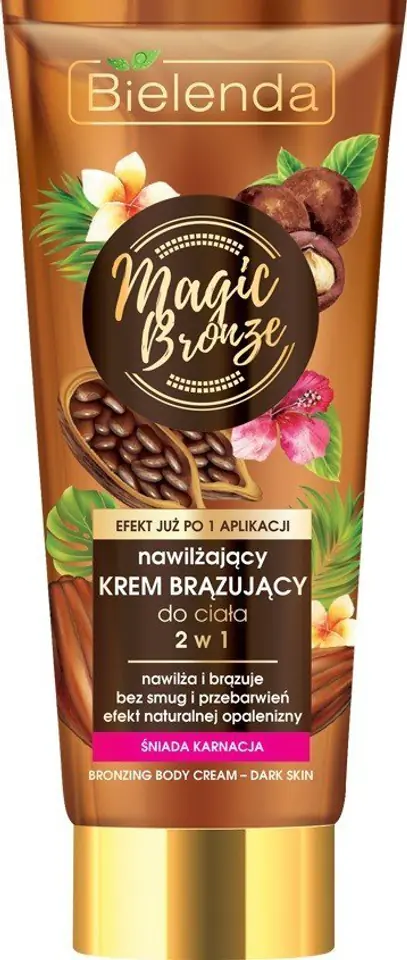 MOISTURIZING BRONZING CREAM for the body, allowing you to get the effect of a natural tan in a short time, while caring for the skin. The velvety formula perfectly spreads throughout the body, allowing for accurate and even application, which minimizes the formation of streaks, stains or stains. The tan effect is visible after 1 application, it lasts up to several days*.