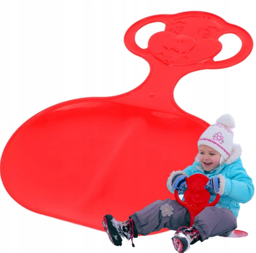 We present fantastic sledges for children in the shape of an apple slide. They are characterized by a durable material that is frost-resistant and a comfortable shape and comfortable handle.