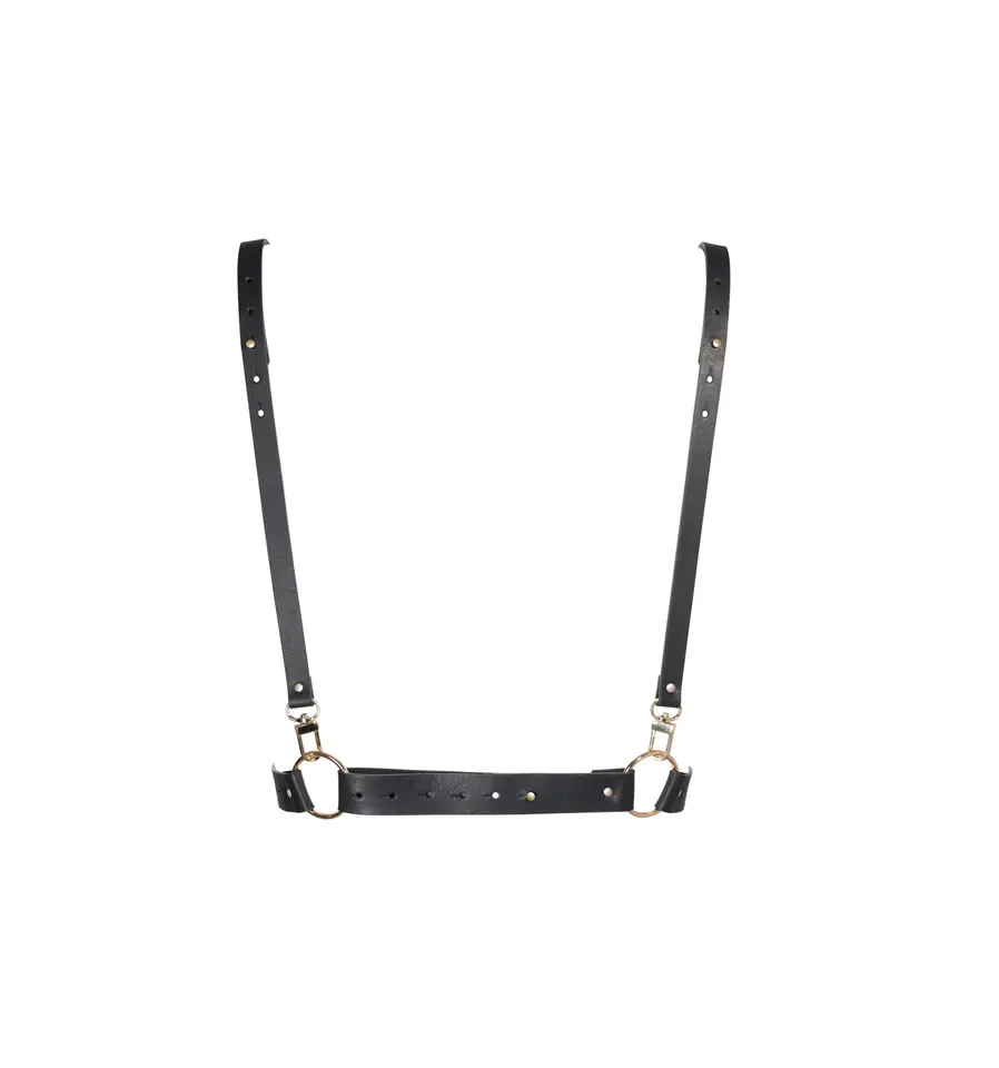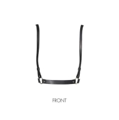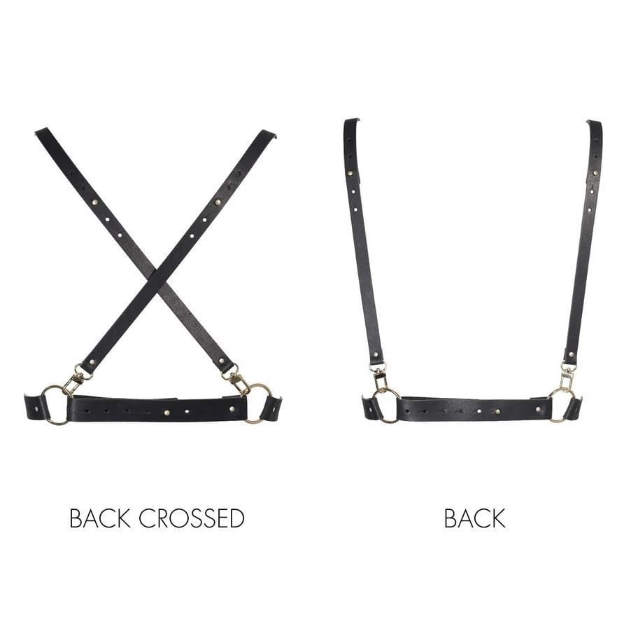BDSM inspired X-shaped harness. Combine with your best outts and lingerie. Adjustable straps that can be worn both straight and criss-crossed. 100% adjustable around the chest and shoulders 100% vegan Material: polyurethane