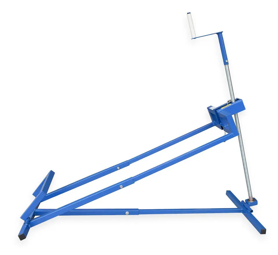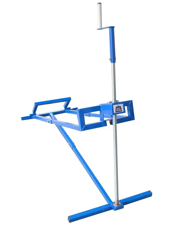 Trapezoidal lift for lifting tractor - lawn mower and quad bike for repair or cleaning after mowing, unscrewing knives for replacement or sharpening. The device replaces the duct that is needed for any repairs on vehicles.