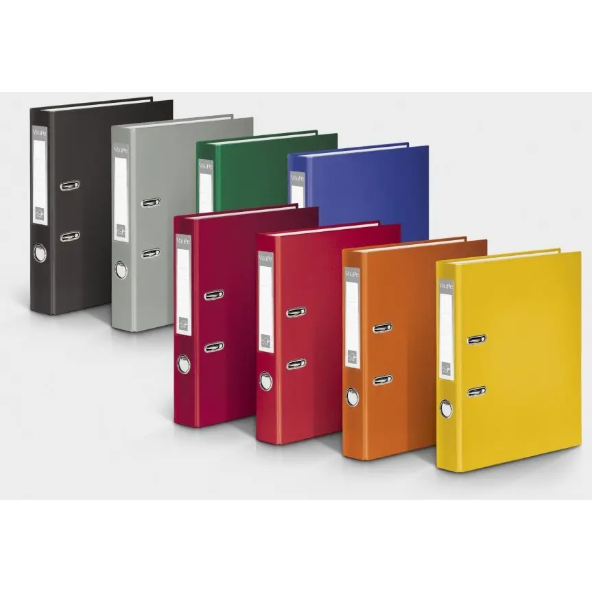 Made of hard, 2 mm tektury_oklejka colorful, foil-covered lever polipropylenową_wyklejka papierowa_mechanizm with a dociskiem_grzbiet with a width of 50 or 70 mm_oczko grzbietowe_okucia owalne_wymienna label for description