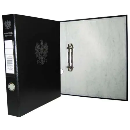 Binder size 275x330x50mm, wrapped, with eagle. On the spine there is an eyelet, an inscription reading "Monitor Polish" and a foil pocket for the label.
