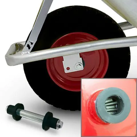 The new tubeless tyre, ankle tread plus axle will provide a stable ride, a much higher payload and a longer service life. Universal size fits 80% of wheelbarrows available on the market. Wheel filled with polyurethane, rim made of strong sheet metal with ball bearings. Set with axle! High-quality materials will allow for long-term use.