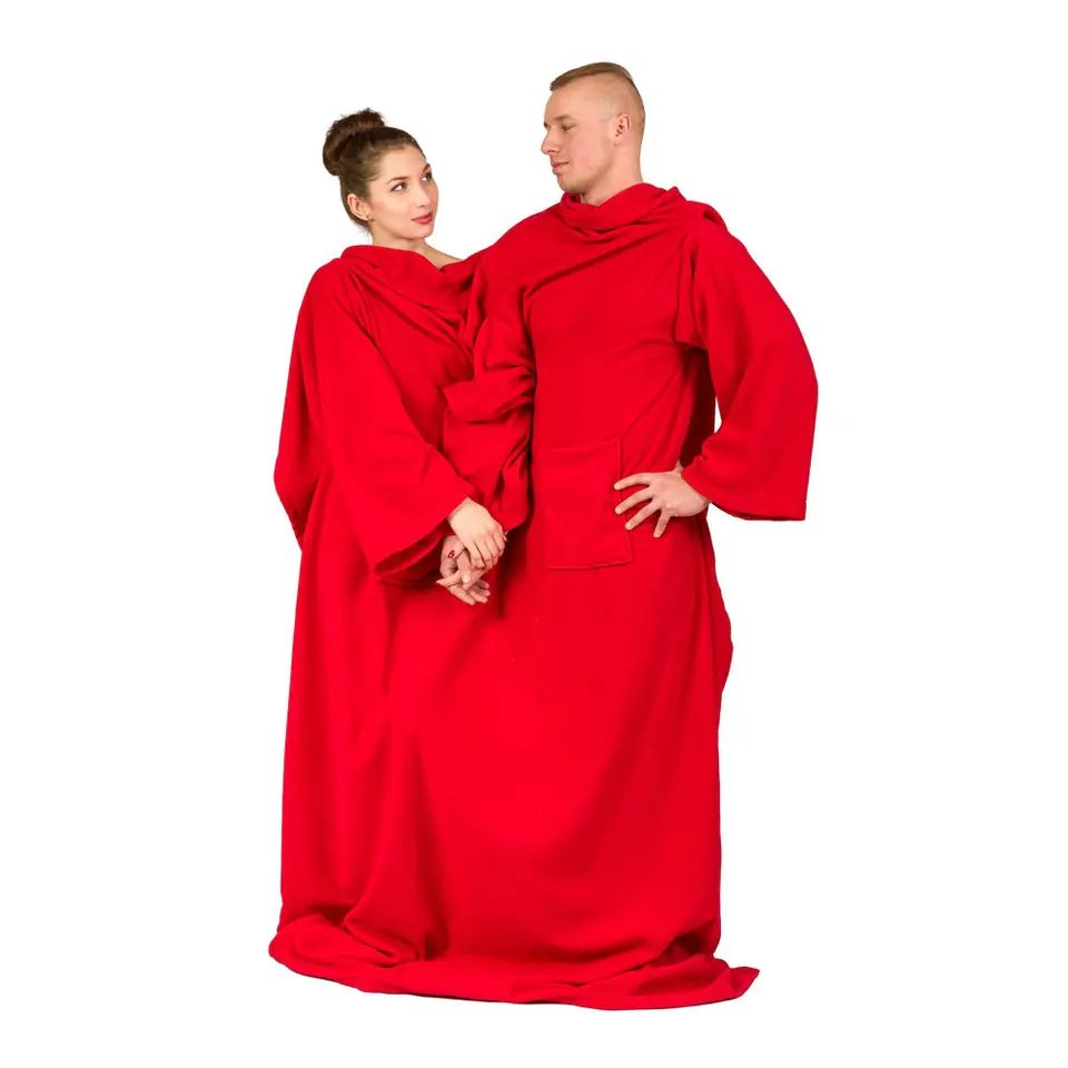 What can you do together on long, cold evenings? There are several options, but sometimes it is most pleasant to hide at home with a cup of hot tea, the latest season of your favorite series, cover yourself with a blanket and spend time with your significant other. However, in order to wrap yourself without a problem and at the same time ensure freedom of movement, you will need a blanket-bathrobe for a couple.This gadget fairly divides the thick fleece into two people so that no one complains about bare feet and cold hands, and it has three sleeves (including one common), thanks to which you can, for example , enjoy a drink and hold hands at the same time. An additional two comfortable pockets on the front will accommodate a remote control, a book and sweets. The blanket can be successfully used both for reading books together and for playing on the console. Blanket - a bathrobe for a couple will quickly warm us up after a long winter walk, it will also work well during a quiet Valentine's date at home. We can cover ourselves with it under the open sky - for example, while watching shooting stars. And if your other half is not next to you, you can successfully use it yourself, e.g. by putting the middle sleeve on your neck like a chimney. A blanket-bathrobe for a couple is an extraordinary gift idea for Valentine's Day or an anniversary. You can also give it to a couple - no matter if they are homemakers, love walks and winter sports, or are lovers of lazy summer evenings spent outdoors.