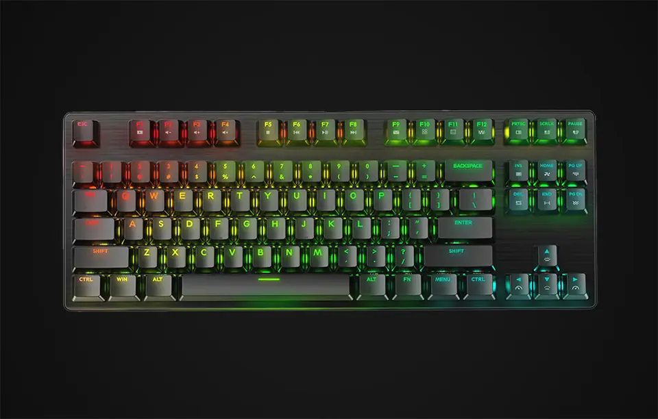 Looking for a gaming keyboard that keeps you running smoothly without taking up too much space on your desk? BW-KB2 is a great choice! The device is equipped with 87 keys with Gateron Red switches and supports anti-ghosting. Thanks to the colorful RGB backlight, it is distinguished by a unique style. The keyboard buttons are fully programmable - you can customize them to your needs using special software.