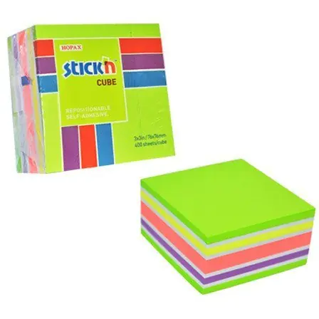 Block STICK"N 76x76mm 400k mix green/yellow/pink 21537