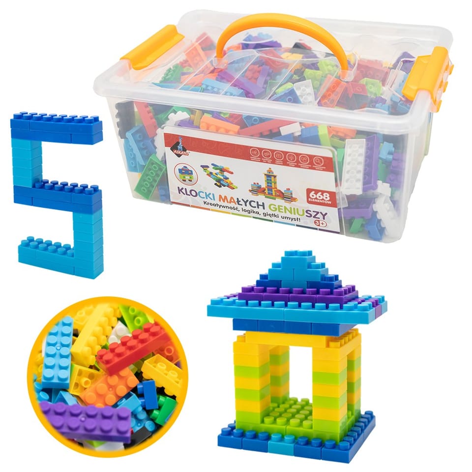 The unique version of Blocks of Little Geniuses Basic is an excellent toy, which develops your child's imagination and manual skills. Thanks to the 668 tile-shaped elements, your child will be able to create unlimited constructions, starting from simple structures up to complex constructions.