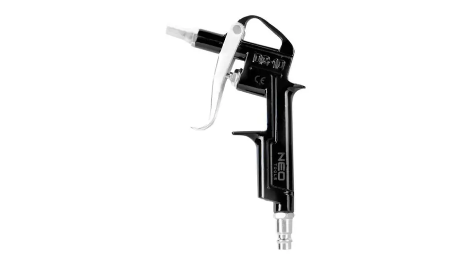 NEO blow gun with short nozzle, made of aluminum. Maximum working pressure 12 bar. It has a practical hook for hanging. A pistol with universal use in the workshop, among others for cleaning filters, blowing out impurities, drying with compressed air. The CE certificate confirms the high quality of the tool.