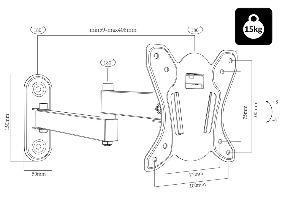 - Standard VESA: do 100mm x 100mm (max)