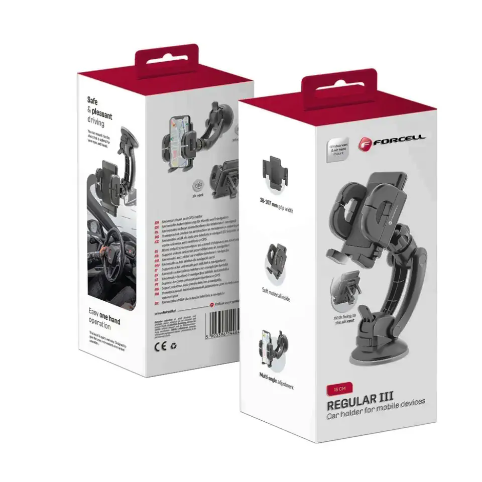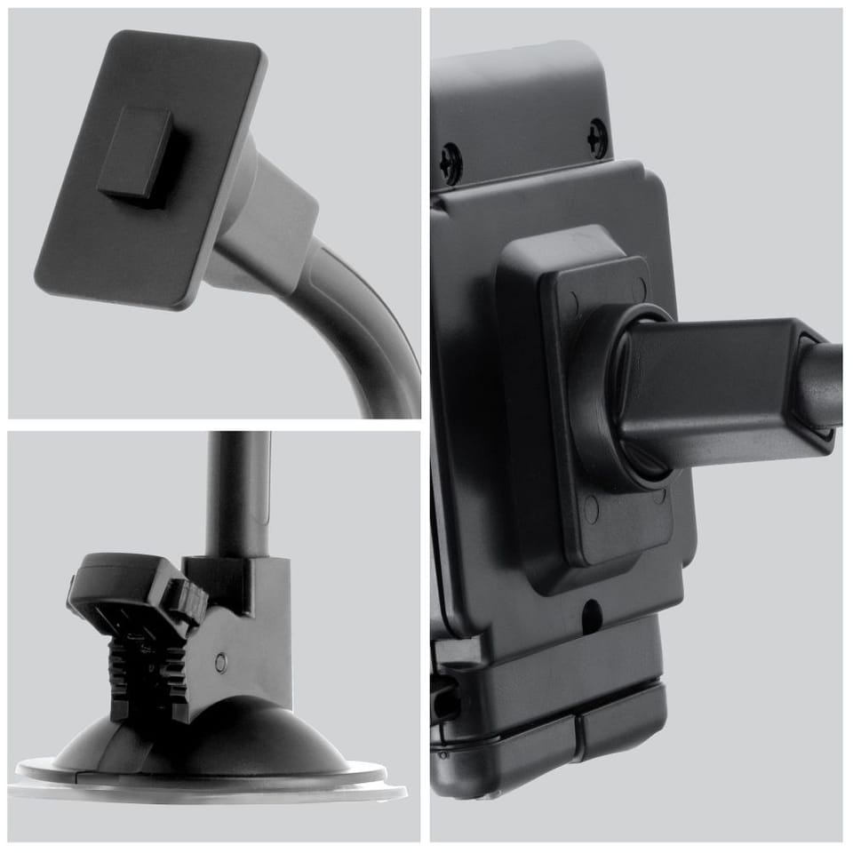 Universal car holder Blue Star Premium Regular 17 Made of high quality materials and with attention to quality of workmanship universal car holder brand Blue Star. Fit for most GSM phones, PDAs, GPS receivers, MP3 and MP4 players, etc. 2 ways of attaching: to the glass with a 17 cm long arm with an extremely strong suction cup with a diameter of 7 cm to the ventilation grille using a special attachment flexible, adjustable arm with a length of 17 cm soft arm adjustment mechanism specially contoured, delicate material holding the device arm spacing: 4 - 10.5 cm possibility of rotation of the front part of the handle vertically by 360°