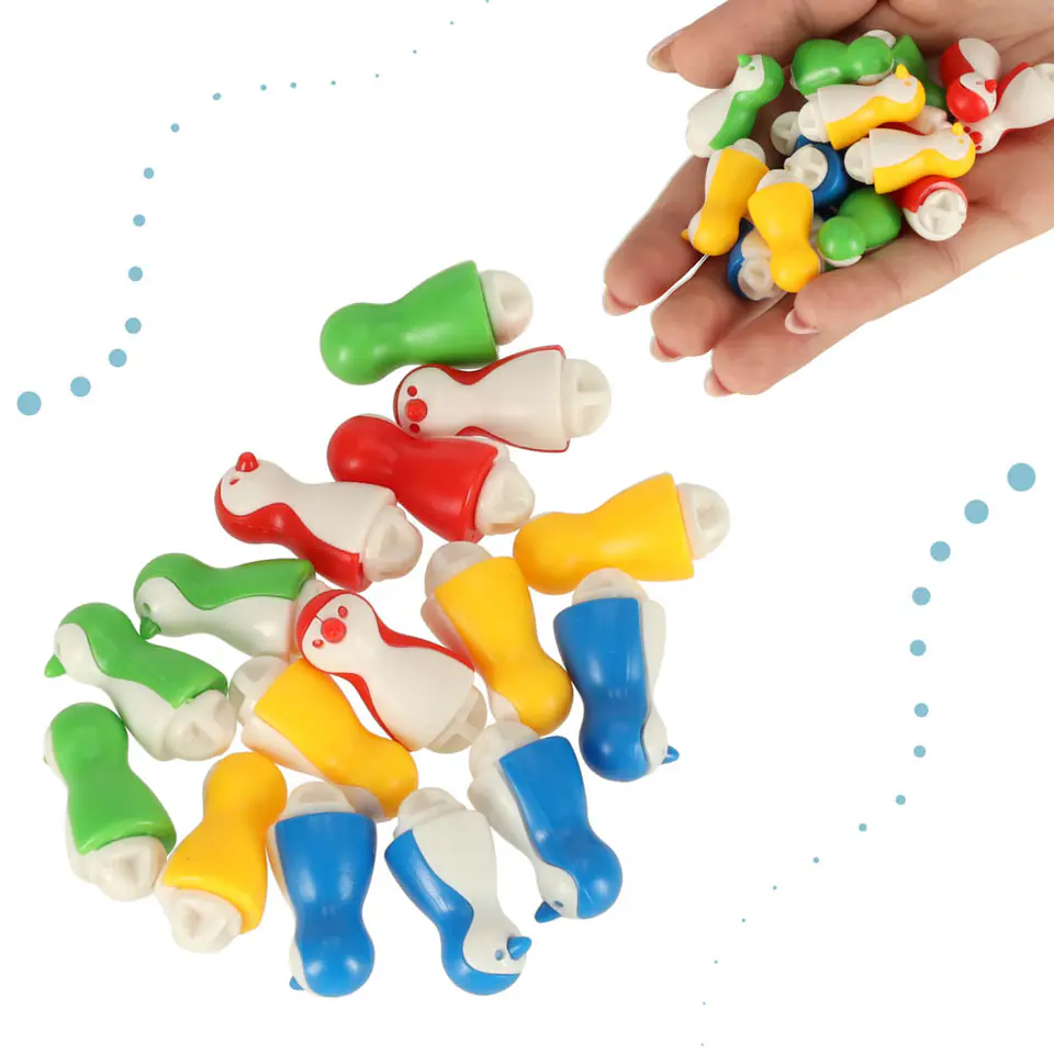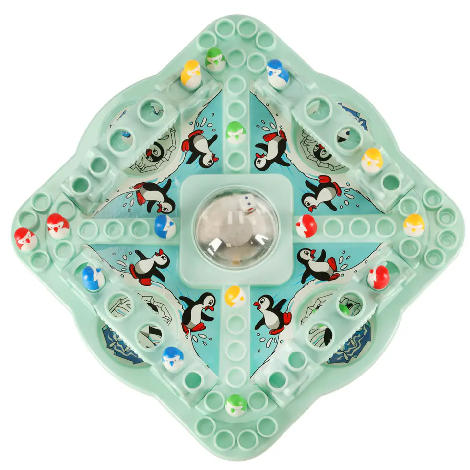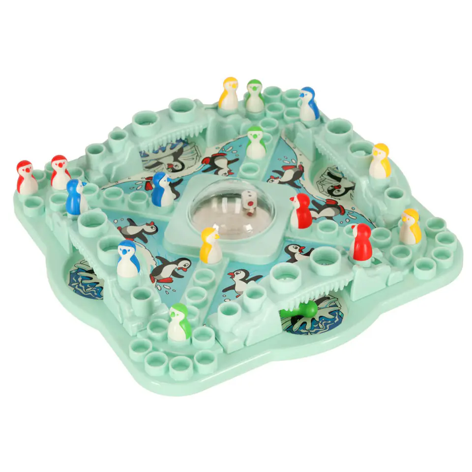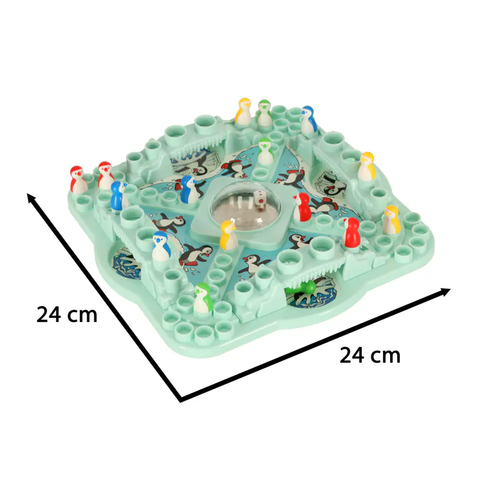 The set includes:- board (base for playing with a dice),- 4 "ice bridges",- 16 colorful penguins 4x4