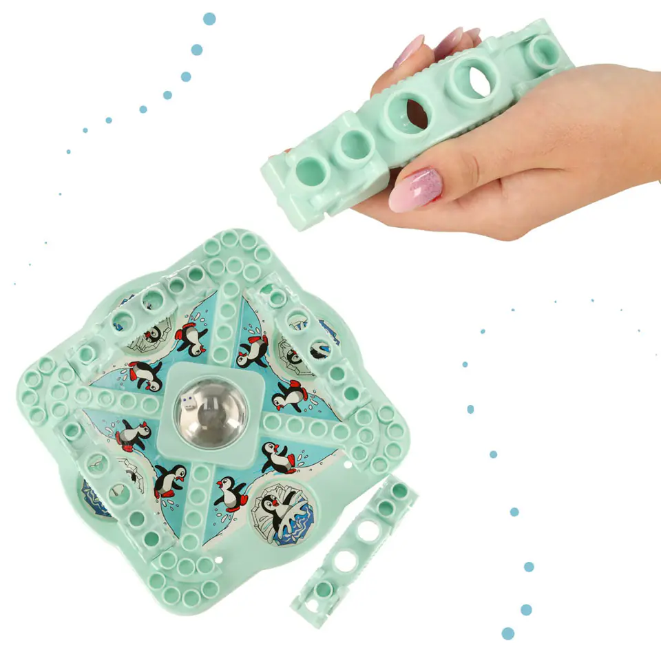 The person who, after pressing the hemisphere placed in the middle of the board, starts by throwing 6 meshes on the cube. During the turn, you can move only one penguin.