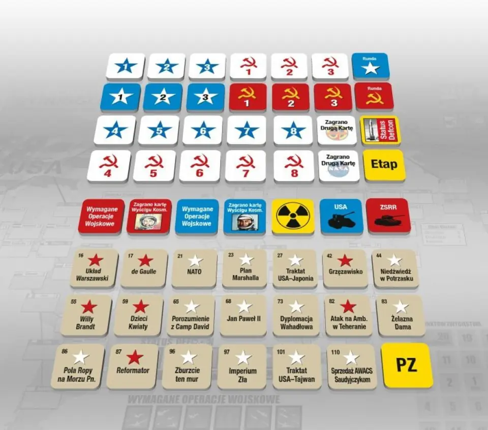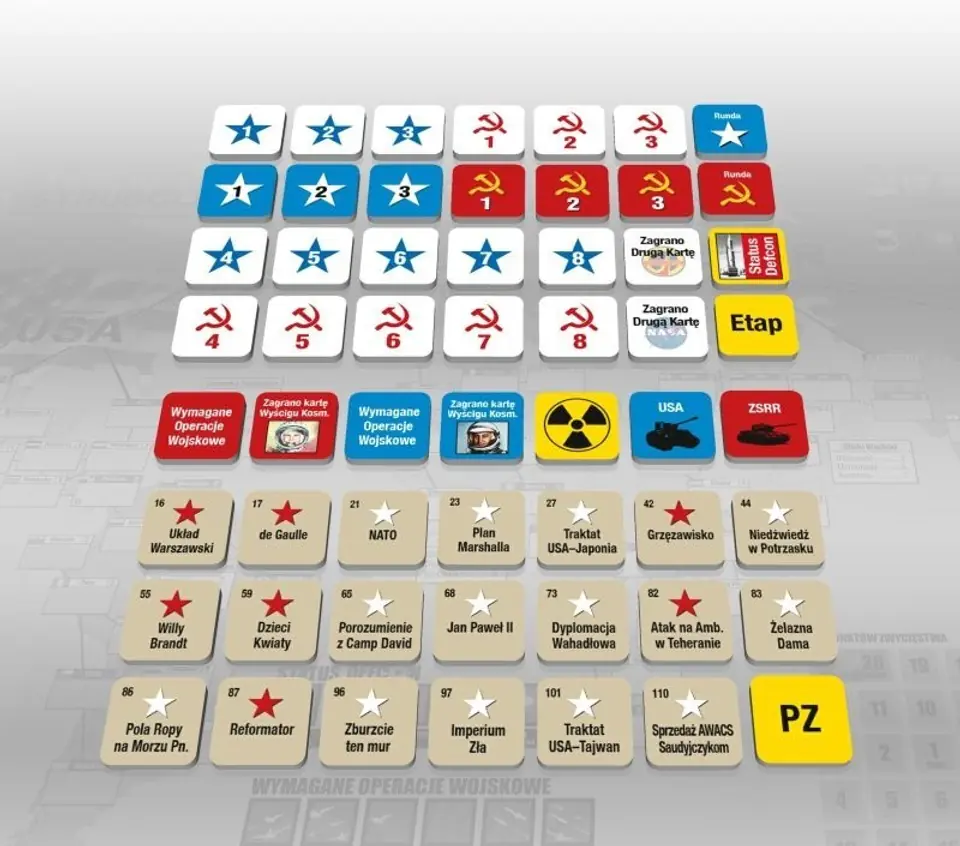 Twilight Struggle's Event cards add detail and flavor to the game. They cover a vast array of historical happenings, from the Arab-Israeli conflicts of 1948 and 1967, to Vietnam and the U.S. peace movement, to the Cuban Missile Crisis and other such incidents that brought the world to the brink of nuclear annihilation. Subsystems capture the prestige-laden Space Race as well as nuclear tensions, with the possibility of game-ending nuclear war.