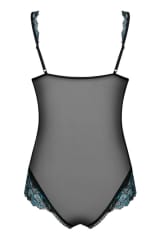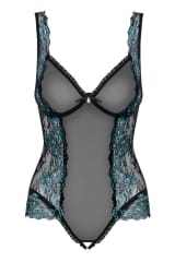 Wrap your body in exquisite black and blue lace and tulle. Amanta is a body in which you will feel comfortable and sensual. Cups on underwire, with shiny decoration in the middle, beautifully emphasize the breasts. The sides of the body are made of phenomenal lace, which also adorns the hips. An open step. The fabric is elastic and pleasant to the touch. Composition: 94% polyamide, 6% elastane.