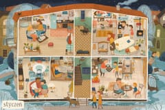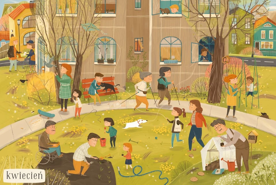 The tenement at Dove 7 is inhabited by a group of warm-hearted people and their lovely charges: Maria and Witold with their two kittens, the writer Oliwia with her family, the bookseller Ola with her son Antek and her dog Azor, the vet clinic managers Basia and Karol with their daughters and their dog Kropka. They are constantly being helped by Krzysztof the handyman. There were also pigeons (the name of the street obliges!), a blackbird, a mouse, a mole, a spider and Benek the cat! This harmonious gang is often visited by guests: chess aficionado Jan, Klara - Oliwia's mum, Karolina and Kacper - the beloved grandchildren of Maria and Witold, farmer Adam with his son Kuba, Hanna - Ola's friend, and her daughter Laura, as well as the postman. The most astute will also spot Lidka the bee from somewhere!
