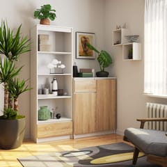 Open bookcase with 3 shelves and pull-out drawer. Dimension 60x180x35