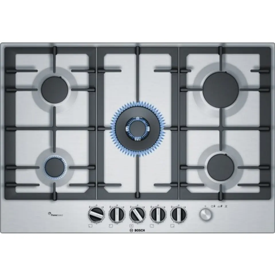 Stainless steel gas plate with FlameSelect: straight to the perfect result thanks to nine precisely defined power levels.