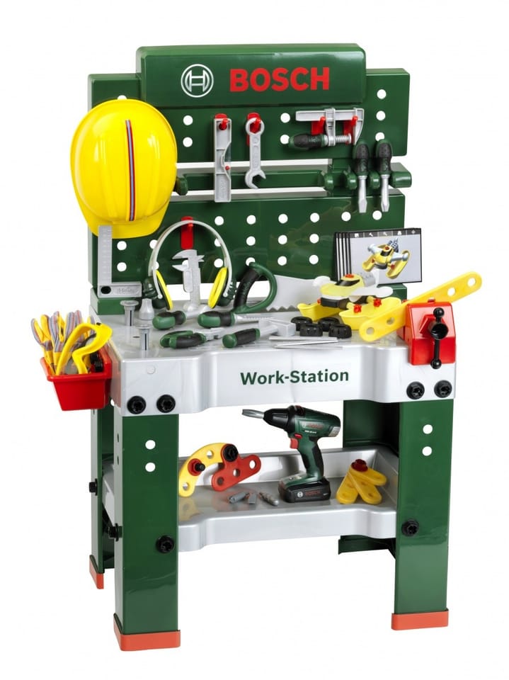 The fully equipped children's workbench is manufactured in Germany under Bosch license. The worktop offers numerous educational functions, a vice and practical storage and storage space. On the back wall of the craft bench and on the shelf under the worktop there is space for high-quality, 81-piece accessories, some of which can be hung on the wall using practical hooks: an electric cordless screwdriver for children, a flat and Phillips screwdriver, a wrench, a ratchet, pliers and a file, a hammer, a saw and a scale, a square, a ruler and a screw clamp. Children learn to skillfully handle screws, nuts and screw elements in different sizes and shapes and pay attention to safety thanks to toy helmets and safety glasses, cool earmuffs and gloves. The self-assembly vehicle, which can be screwed together and taken apart again at the workstation, is particularly fun. In this way, the children's room becomes a workshop! Just put on a hard hat and safety glasses, put on gloves and you can start sawing, hammering and screwing. A vice helps hard-working designers and holds the strips that need to be attached with nails or screws. There is also a cordless screwdriver that uses light and sound to screw everything the little ones want to connect into something big, and when all the work is done, everything can be quickly organized on hooks and in boxes.