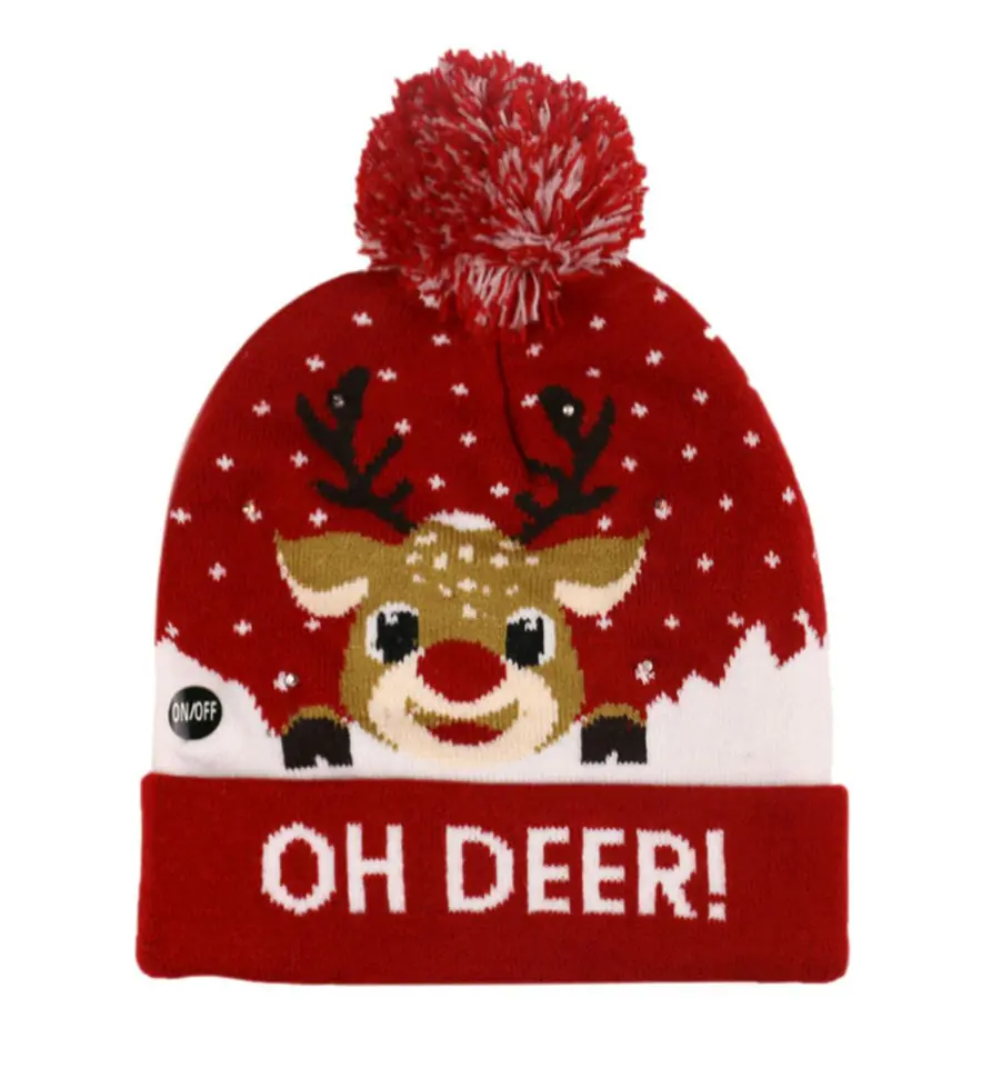 - Cap with LED backlight and reindeer motif.