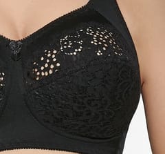 Excellent construction without underwire, comfortable wide straps and reinforced fasteners are the undoubted advantages of this bra. Elegant lace, soft cotton knitted lining on the bottom ensure comfort. The bra pattern has been patented for the sake of a unique design that provides stability and comfort worth recommending, especially for women with large breasts.